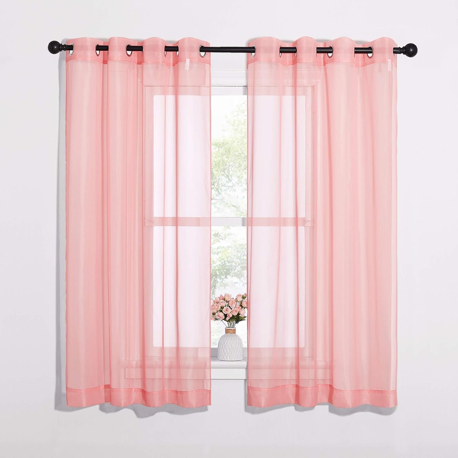 Coral Sheer Curtains L63 inches – Grommet Lightweight Gauzy Textured Sheer Panels Window Treatment for Girl/Daughter’s Bedroom (W54 x L63, Coral, 2 PCs)