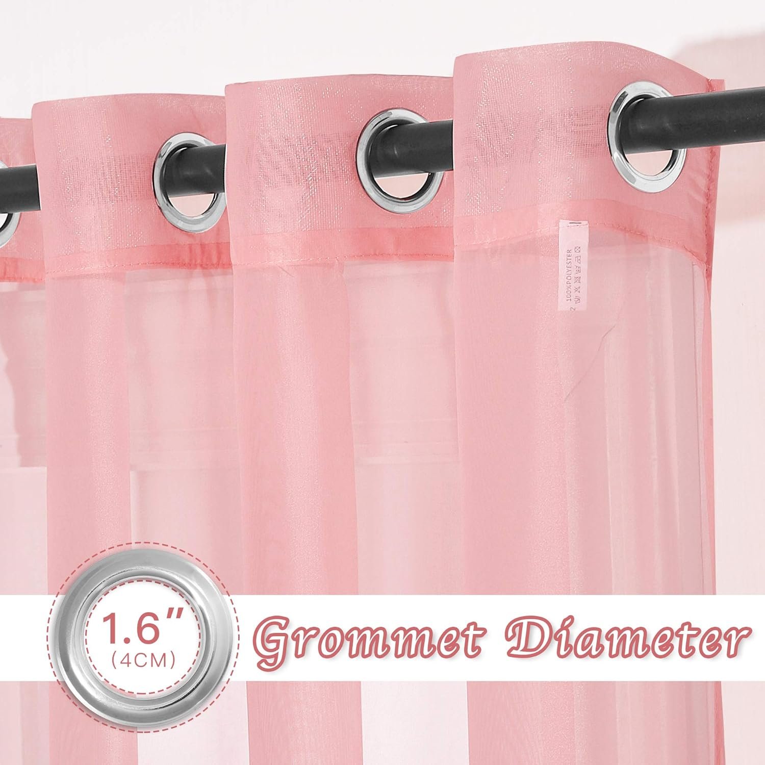 - READY MADE: 2 panels sheer curtains per package. Each panel is 54″ wide and 63″ long when hanging as a flat. One of the grommets’ inner diameter is 1.6″. Purchase curtain whose width is 1.5-2 times wider than your window will form a nice look.