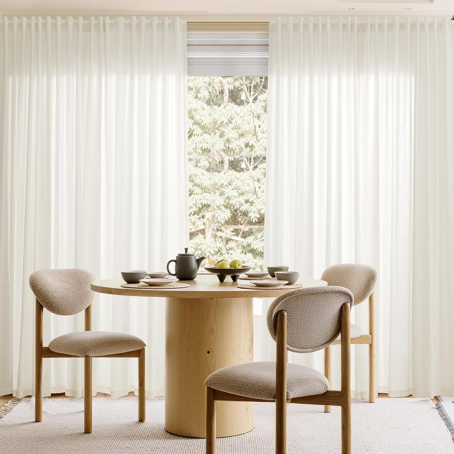 • LINEN BLEND FABRIC: Crafted from rich flax linen fabric blended with polyester featuring a neutral linen shade, those panels are more textured than normal sheers and showcase an casual and natural look. Soft touch feeling on these elegant linen blend draperies add an rustic classic and refreshing charm to your window