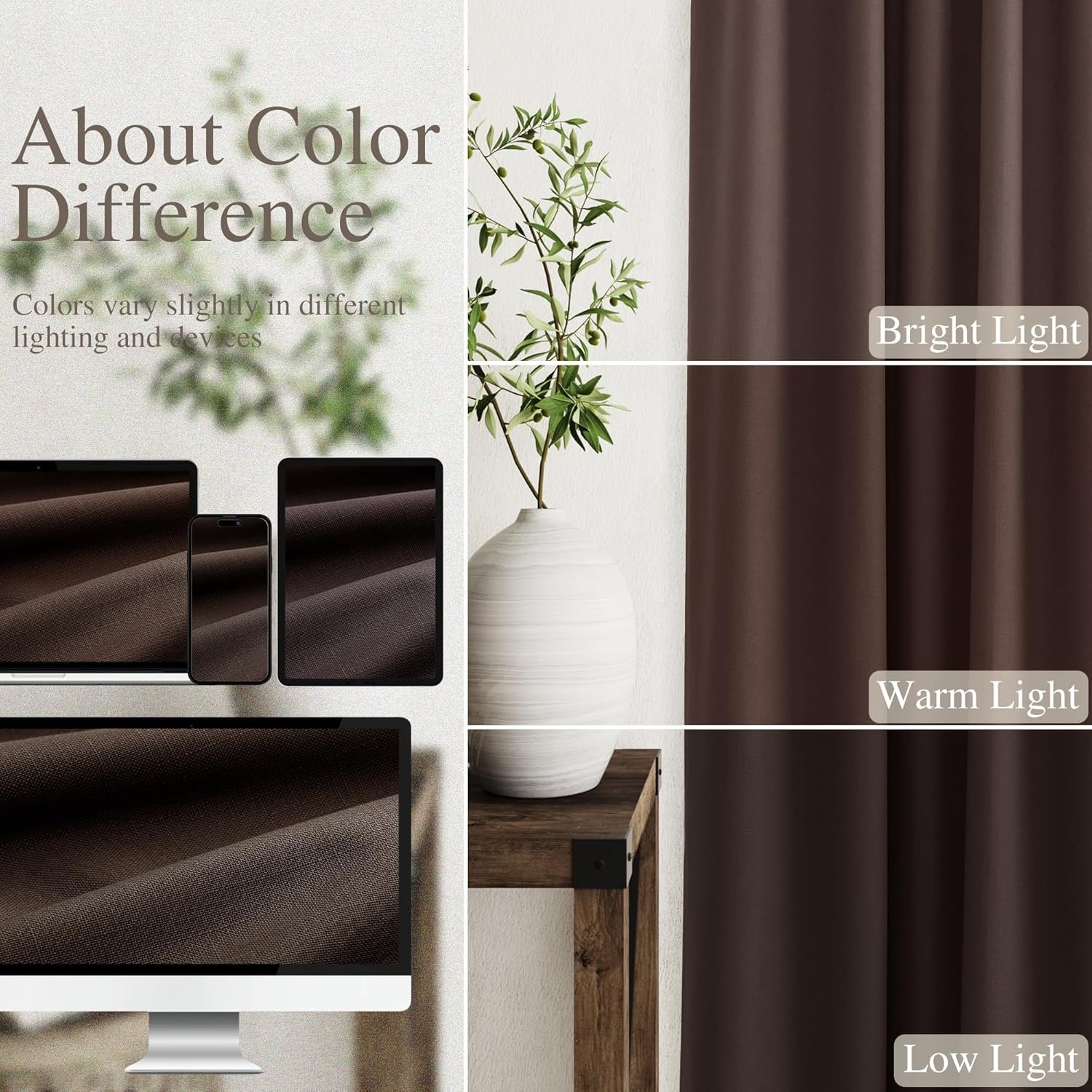 • HERMAL INSULATED & ENERGY SAVING: These coffee blackout curtains can block sunlight in summer to keep the room cool, and act as a barrier in winter to prevent heat loss from the room while blocking cold winds from blowing in thus cutting your budget. Classic and timeless look make your room full of natural and fresh feeling. Perfect for a shabby chic, modern farmhouse, country chic, rustic, country, vintage