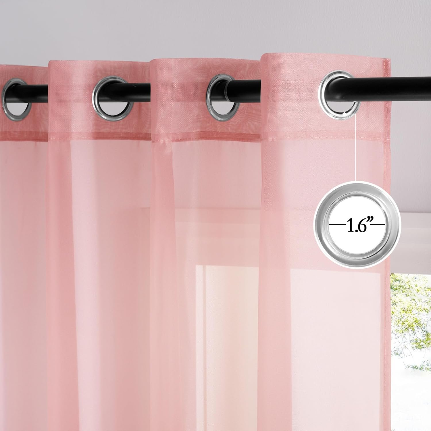 READY MADE: 2 panels sheer curtains per package. Each panel is 54″ wide and 84″ long when hanging as a flat. One of the grommets’ inner diameter is 1.6″. Purchase curtain whose width is 1.5-2 times wider than your window will form a nice look.